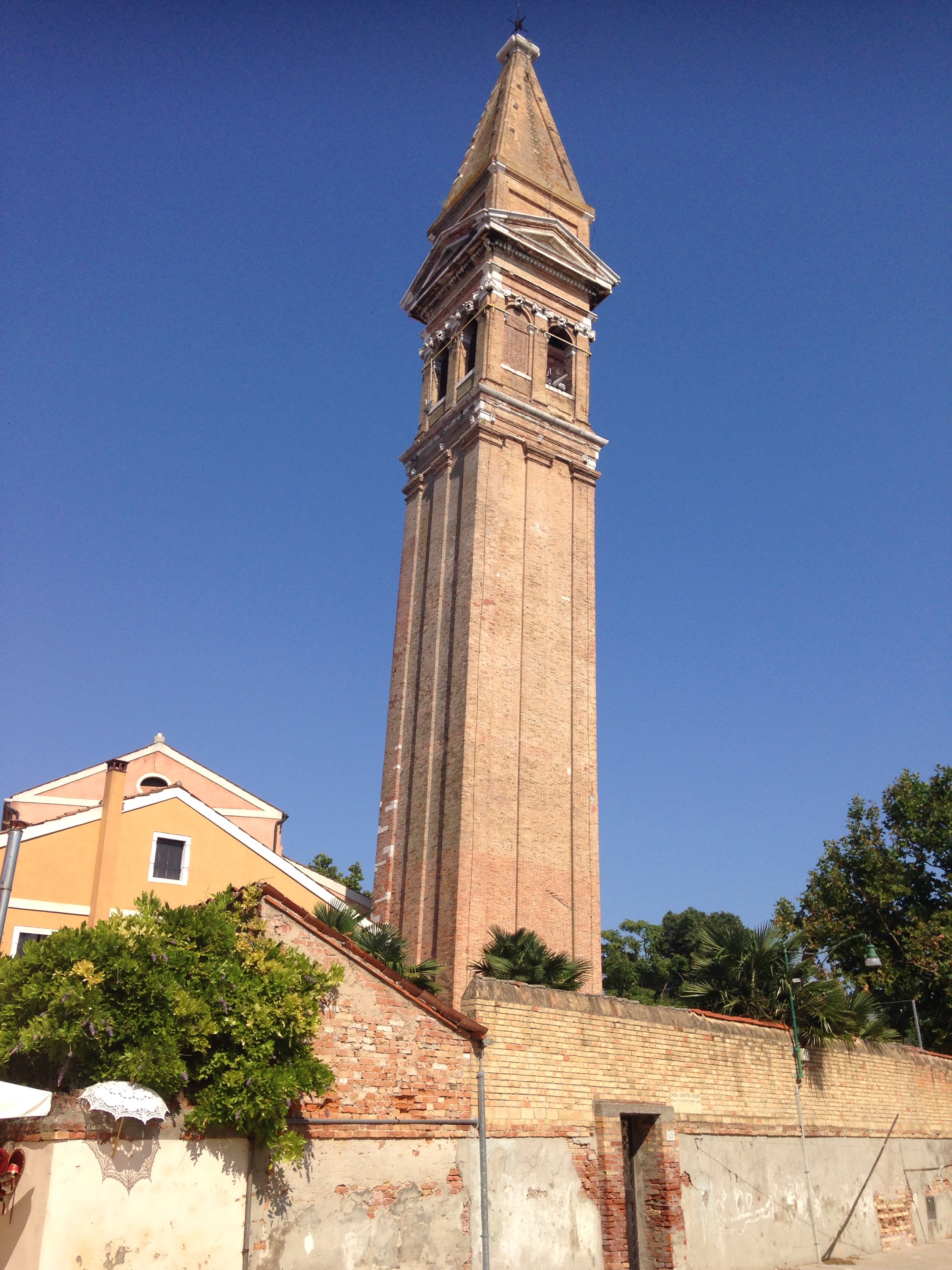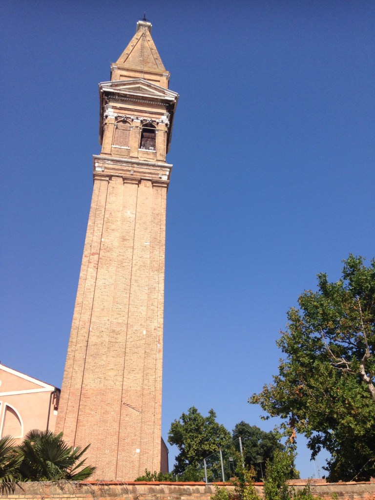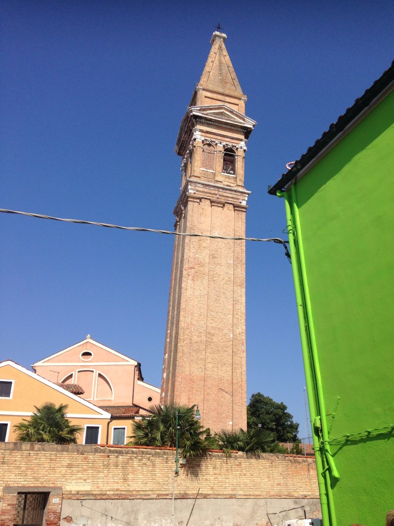 Why Burano you might ask, it is the island of lace and is where the lace museum is located. Also some very quaintly painted houses and their own version of the leaning tower of Pisa. It too is a bell tower and has an unbelievable lean to it.
