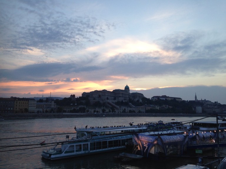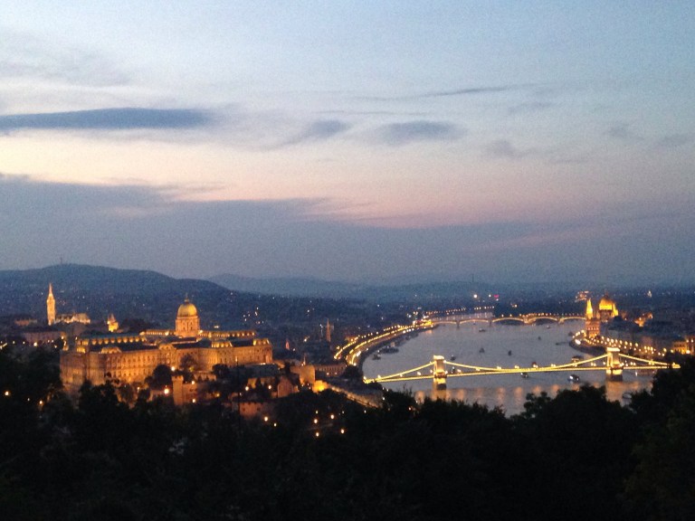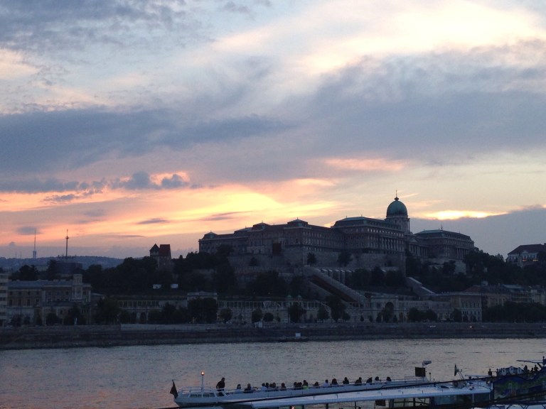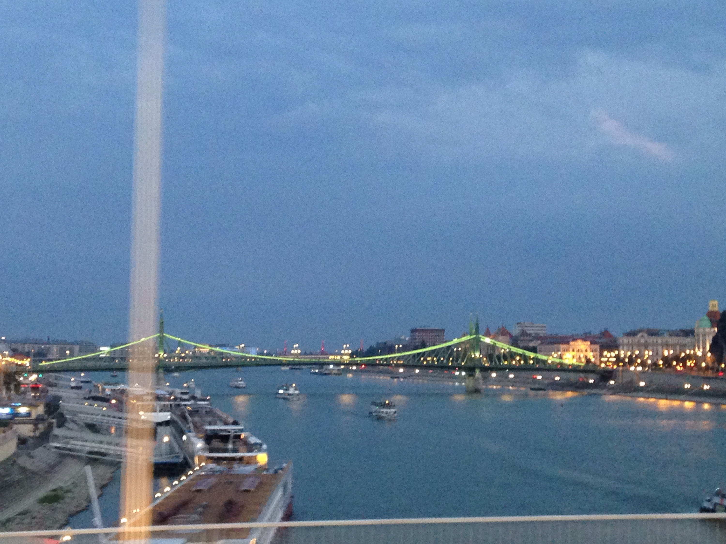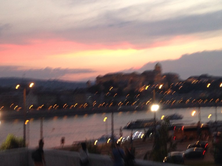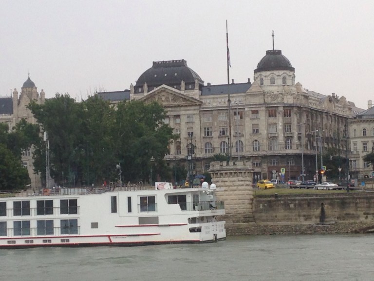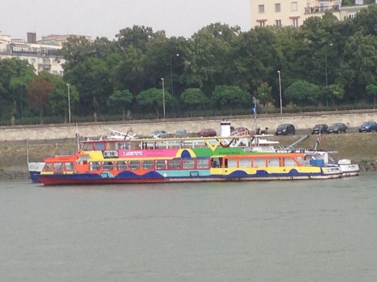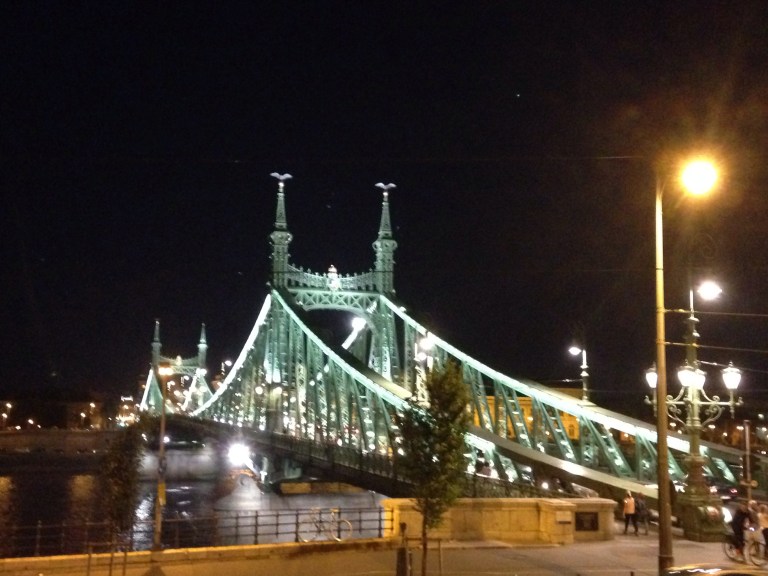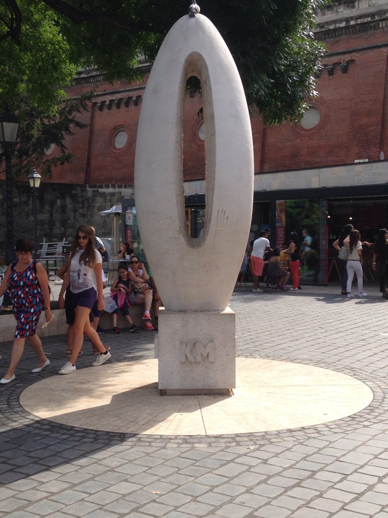 Left cafe and headed for the river where we were catching a bus for a night tour. On the way we passed the zero kms marker for Hungary.