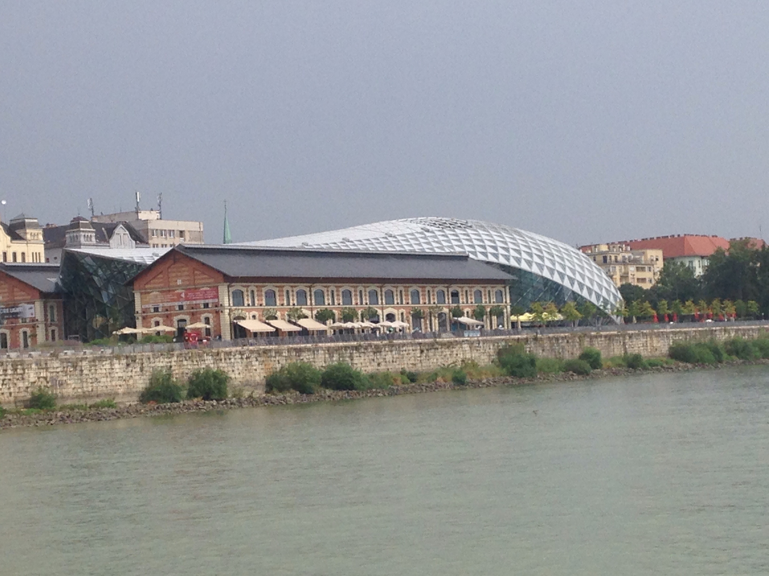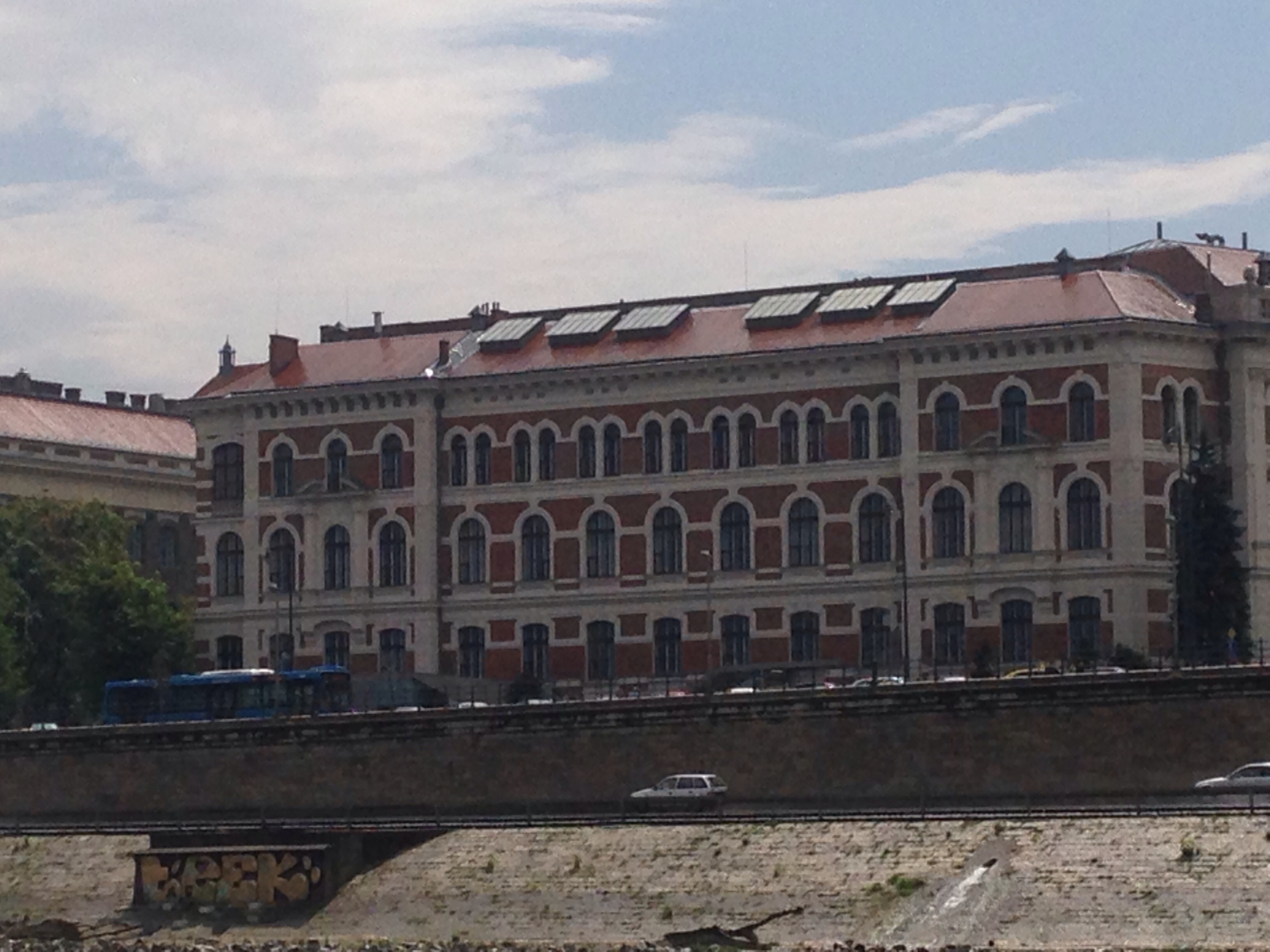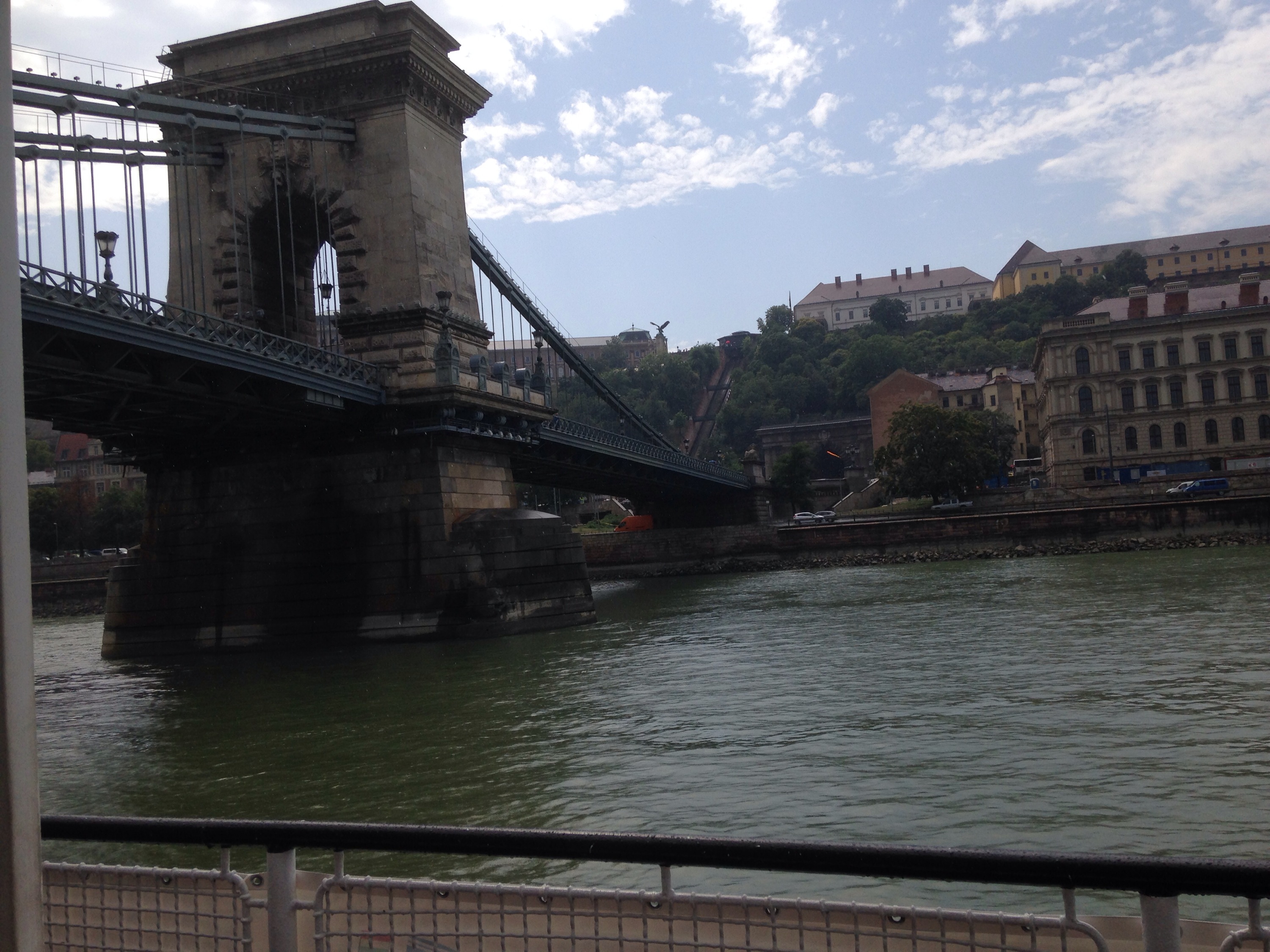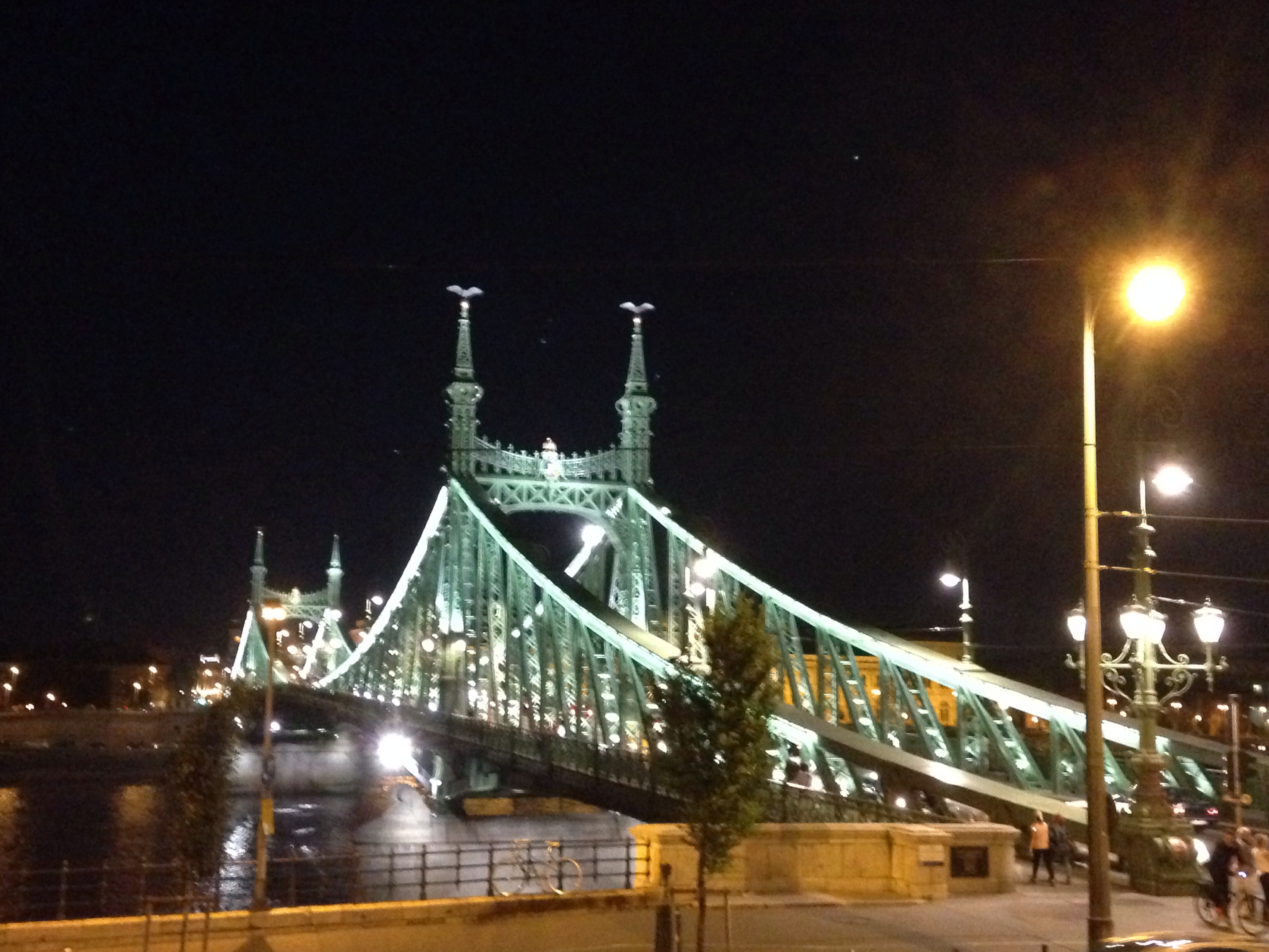 Left cafe and headed for the river where we were catching a bus for a night tour. On the way we passed the zero kms marker for Hungary.