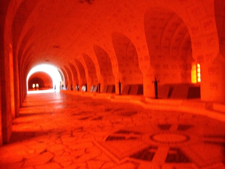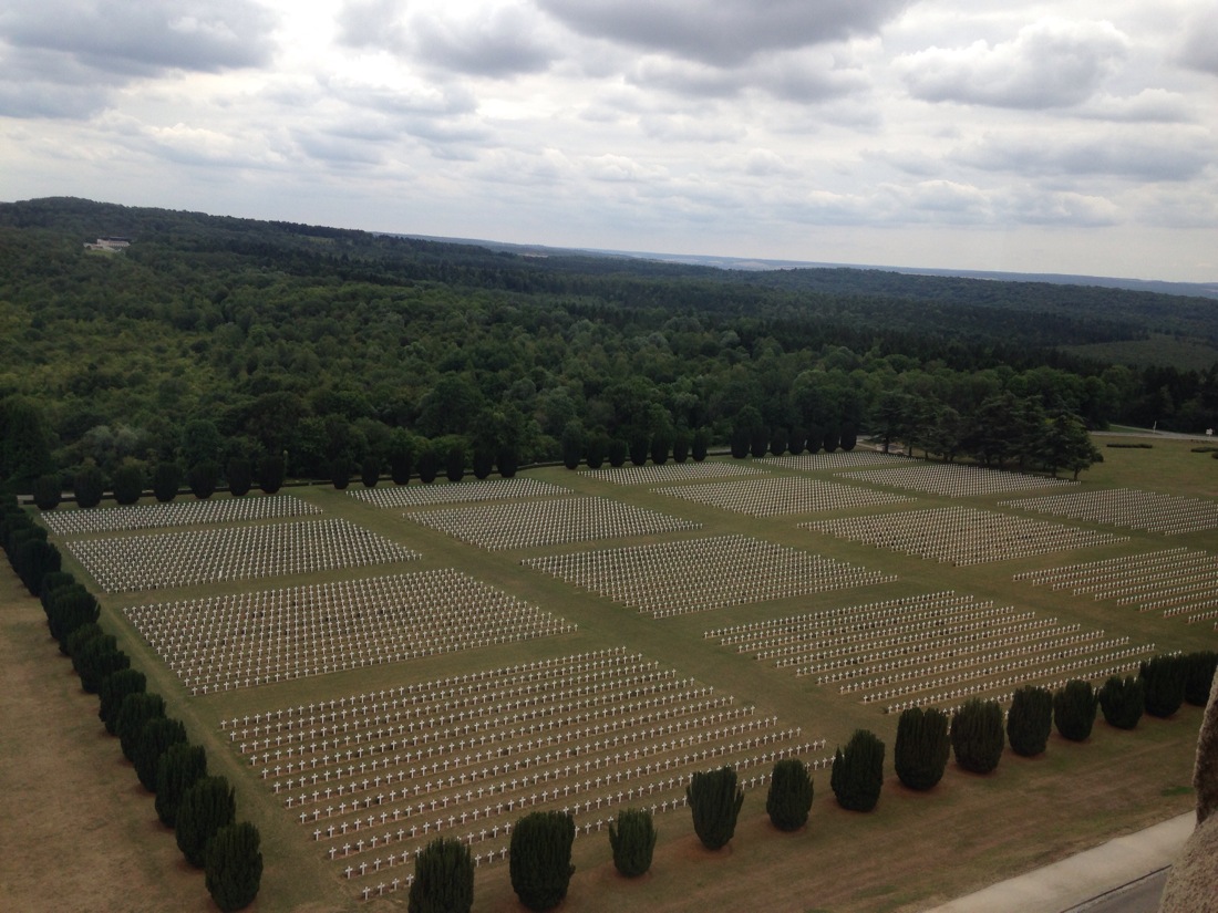 This is where their are 130,000 French soldiers buried along with an unknown number of French and Getman soldiers who could not be identified from their remains. They are entombed under the Ossuairy with windows the length of the building for all to see. Very mind numbing. The building is in the representational shape of a sword driven into the ground to the hilt to symbolize peace.