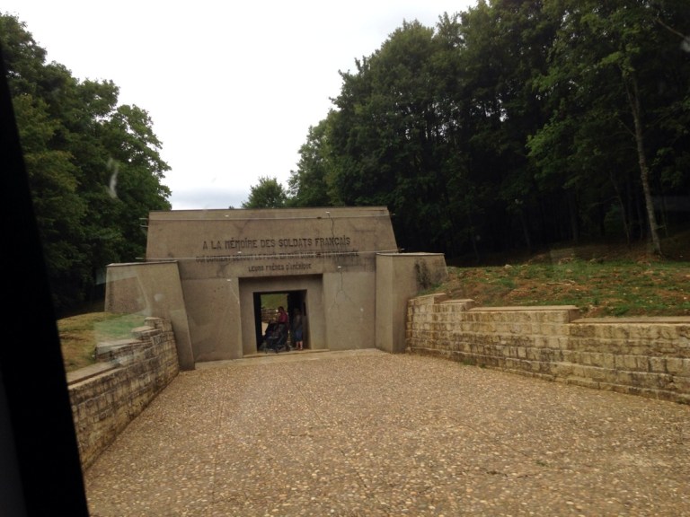 Last stop was the Tranchee des Baionnettes. This is a 150 metre long covered trench that holds the bodies of 137 French soldiers. Due to the number and decimation, it was decided to fill in the trench and make it a memorial site. The chilling factor is that no one really knows how many are still out there on the battlefields. Very similar to Gallipoli.