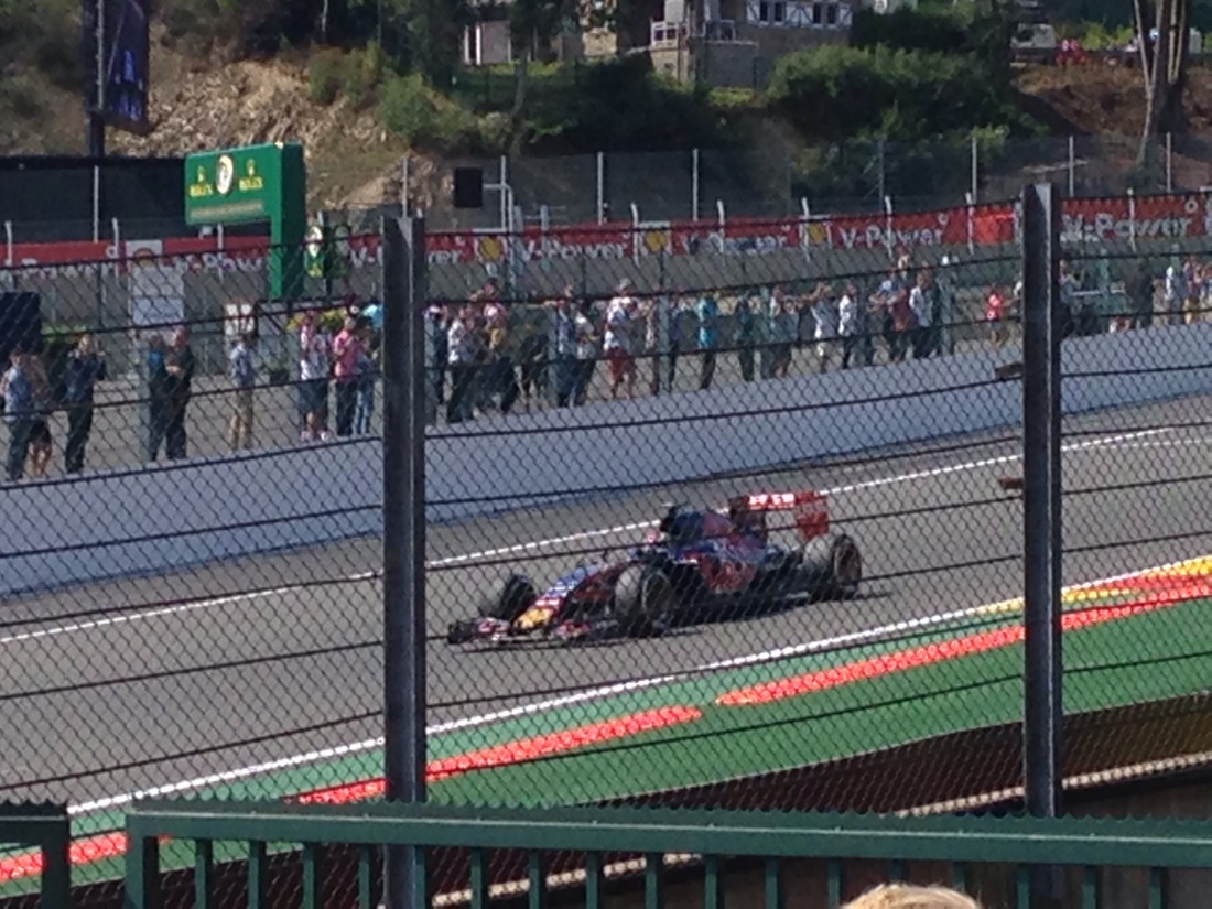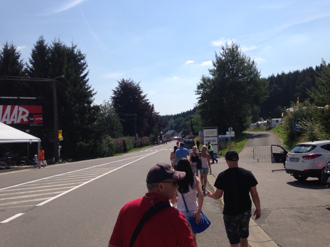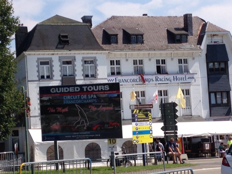 Headed for Spa for our Belgium Grand Prix weekend. Lucky us, we would be camping at the circuit. Set up Myrtle and headed to the circuit, which was about 2kms away. We were camped at the top of the mountain and the track is built in, on and around the valley at the bottom. Walk back tonight might be interesting.
