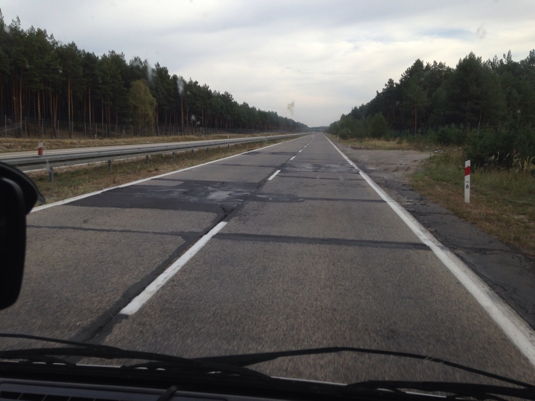 On the road early, we pushed on. As soon as we crossed the border into Poland, the condition of the freeway degenerated dramatically. Speed limit was 70kph, covered in potholes and repairs, and in some sections half the road was closed with weeds growing through it. This went on for near on 90kms.