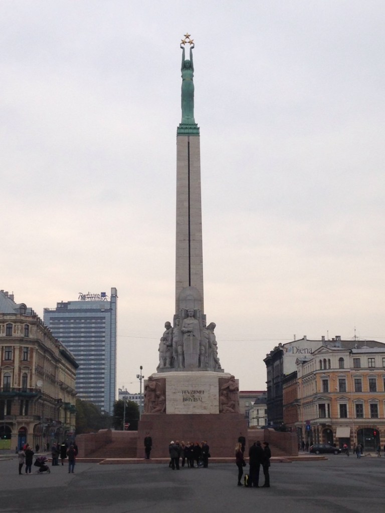 The Freedom Monument which survived the Communist Era unscathed. This was because the Russians decided that the three stars at the top represented the three Baltic states supported by mother Russia, when in fact they represent the then three Lapvian areas.