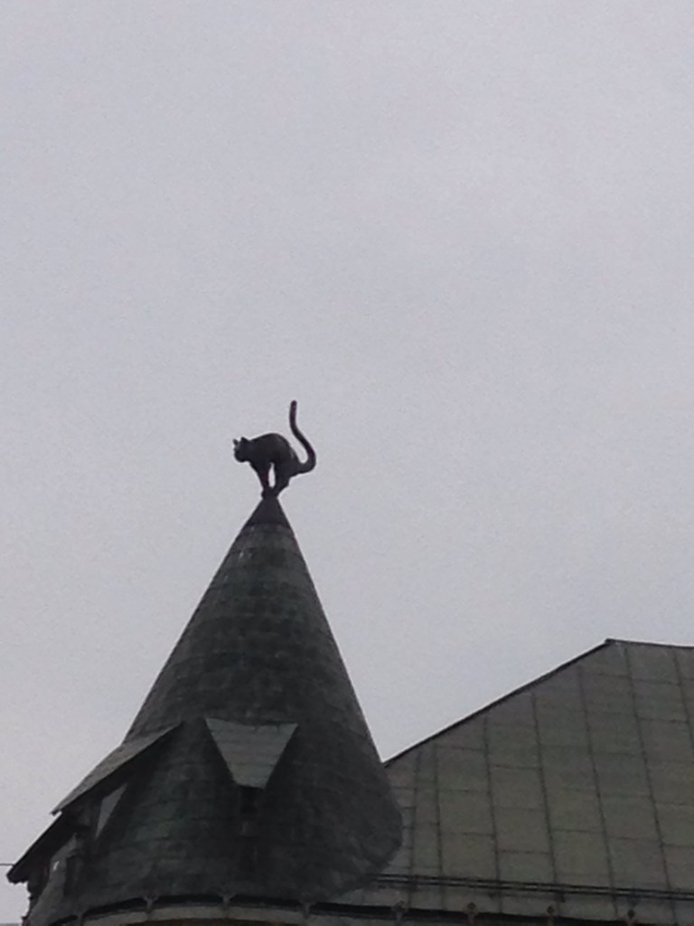 This was constructed by a wealthy merchant who was not German. You had to be German to be a member of the Grande Guild. It is built, opposite the guild and the cat, which is on the top used to have its rear pointing towards the guild. The guild saw this as an insult, as cats were low forms of life and had demon tendencies, took him to court as they thought it offensive for the cats rear to point at the guild. The guild won the case and the cat had to be turned around.