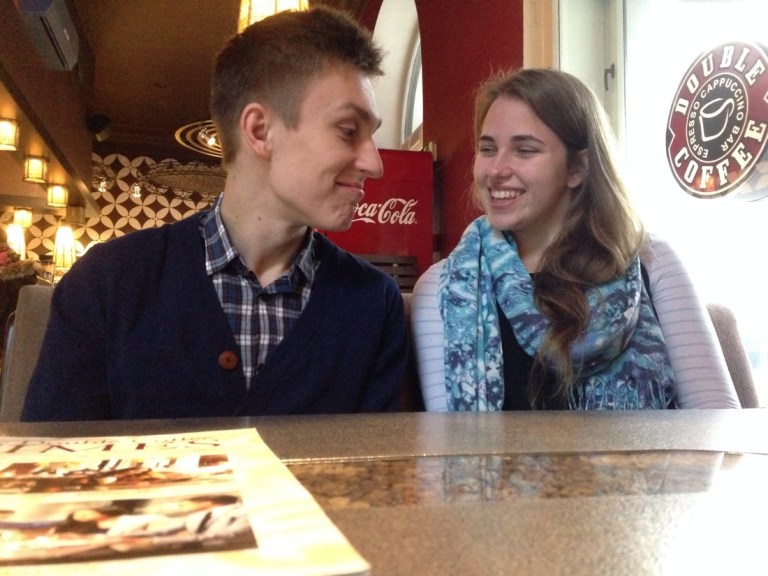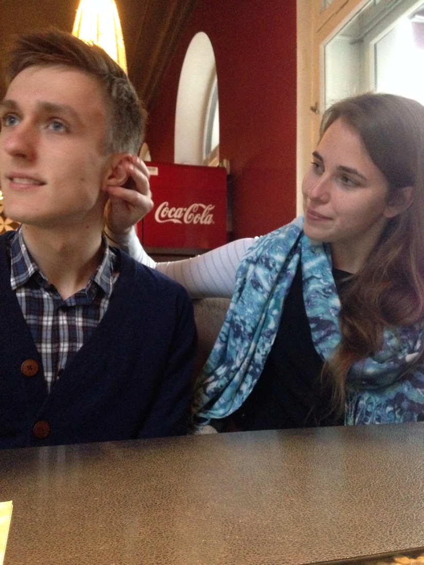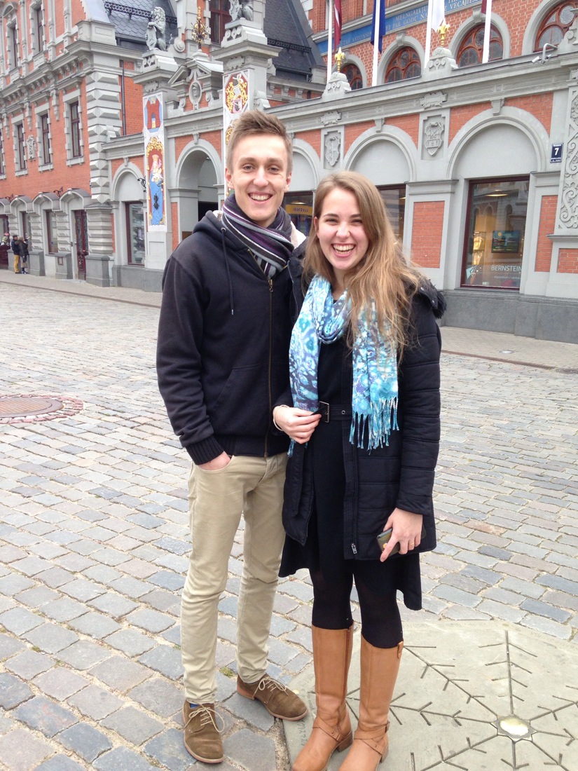 Coffee with this happy couple while we waited for the traditional Latvian restaurant to open. Very handy having your own private tour guides.