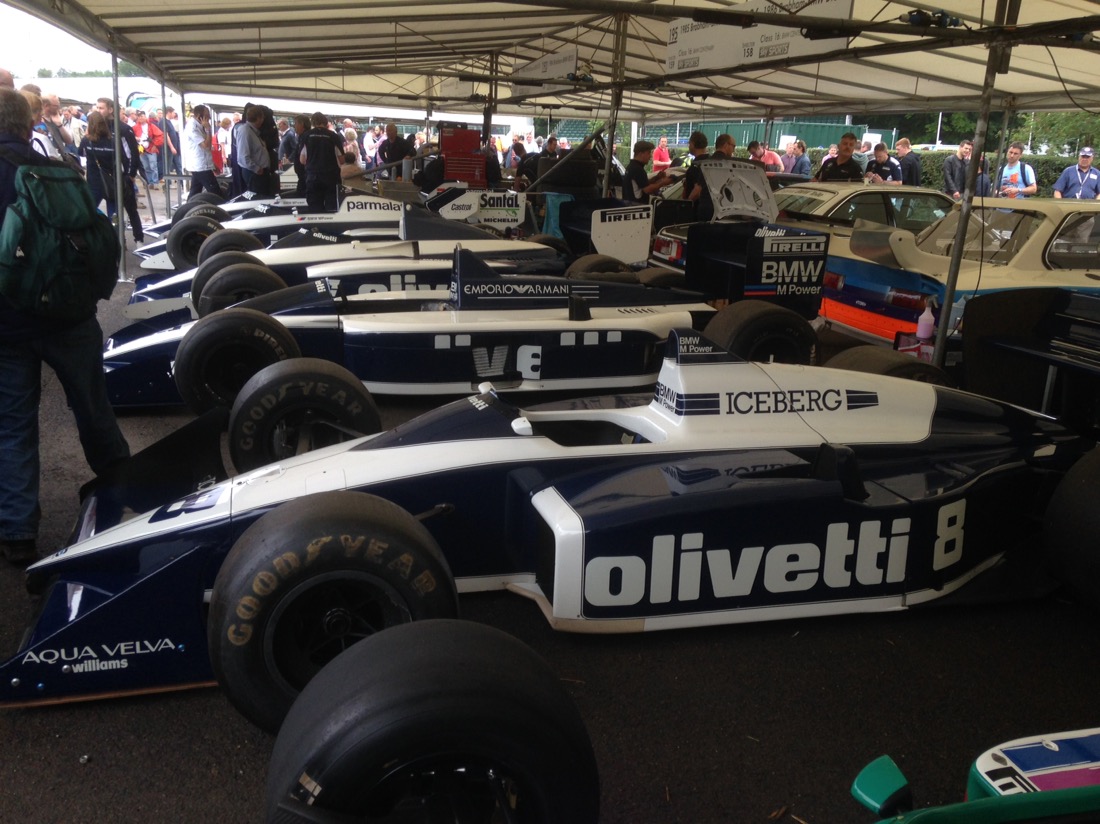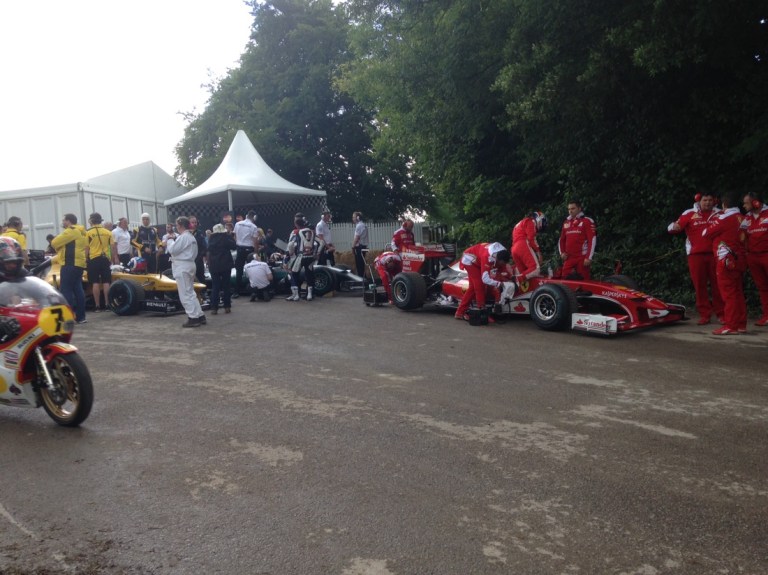 F1 cars at the top of the hill being restarted for the trip back down.
