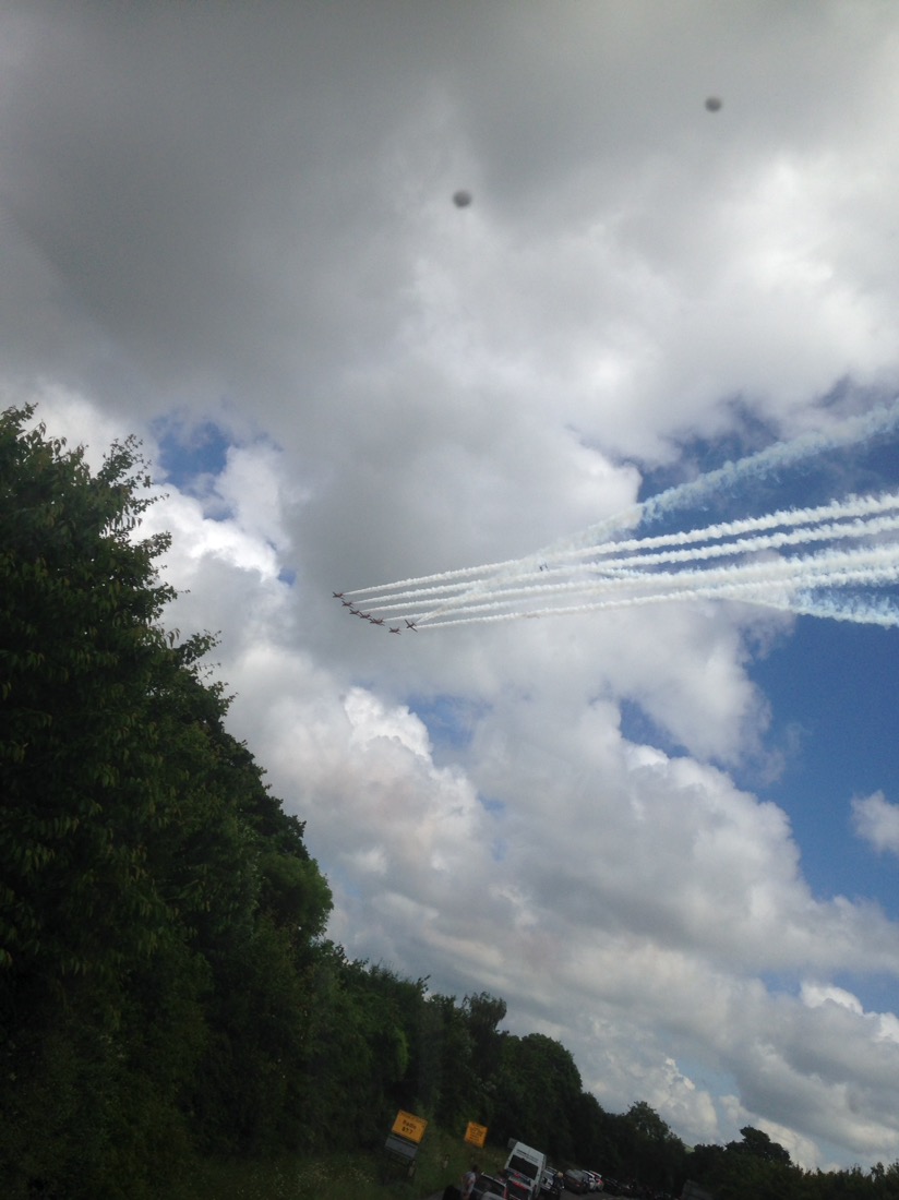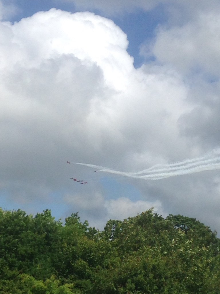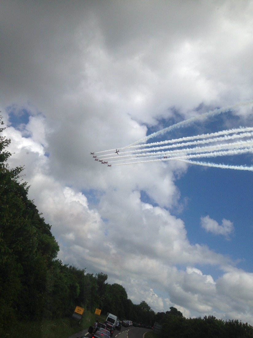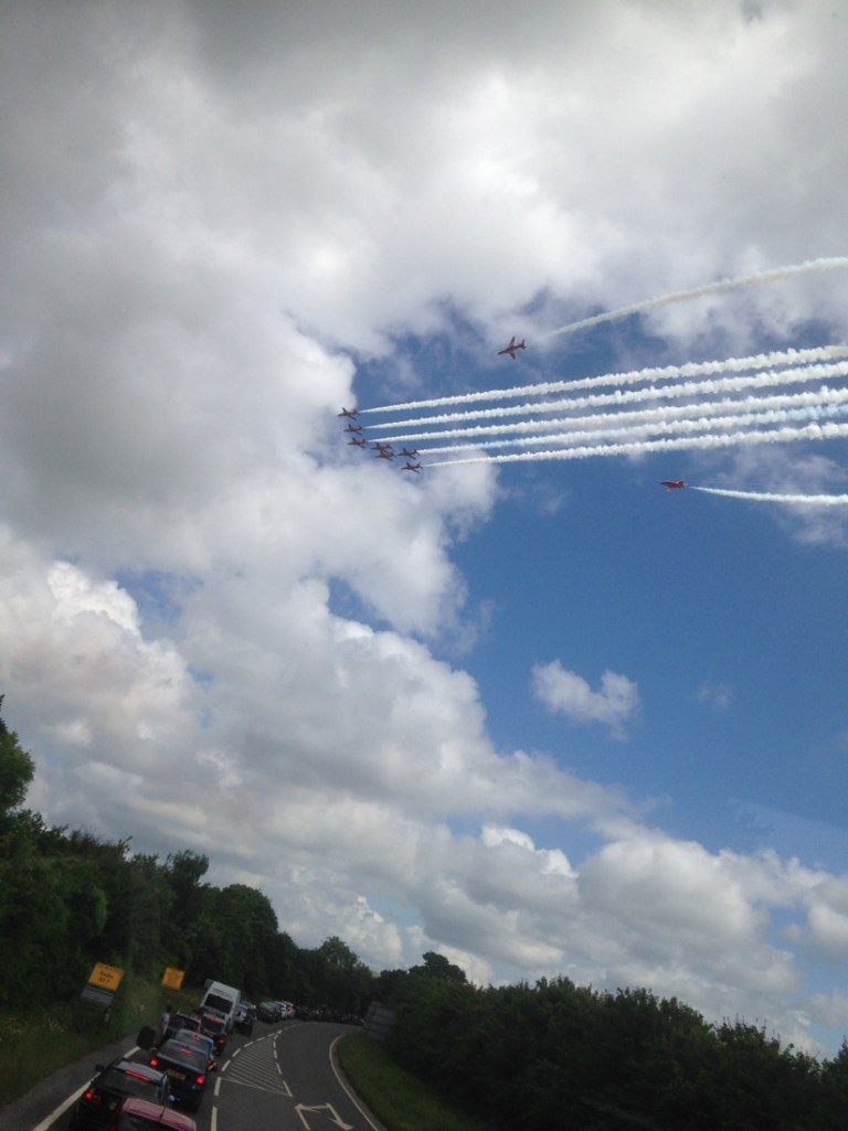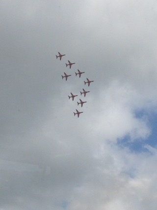 On the way we happened to see the Red Arrows aerobatic team on full flight.