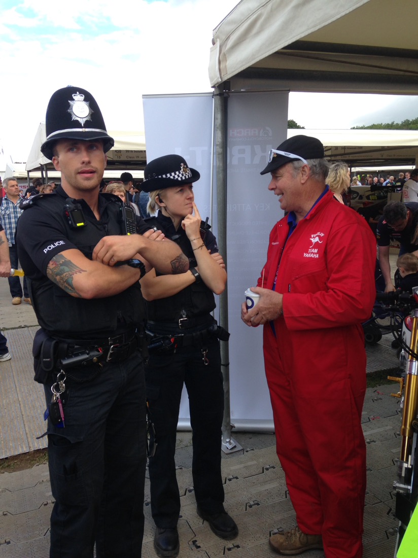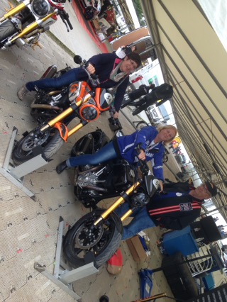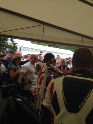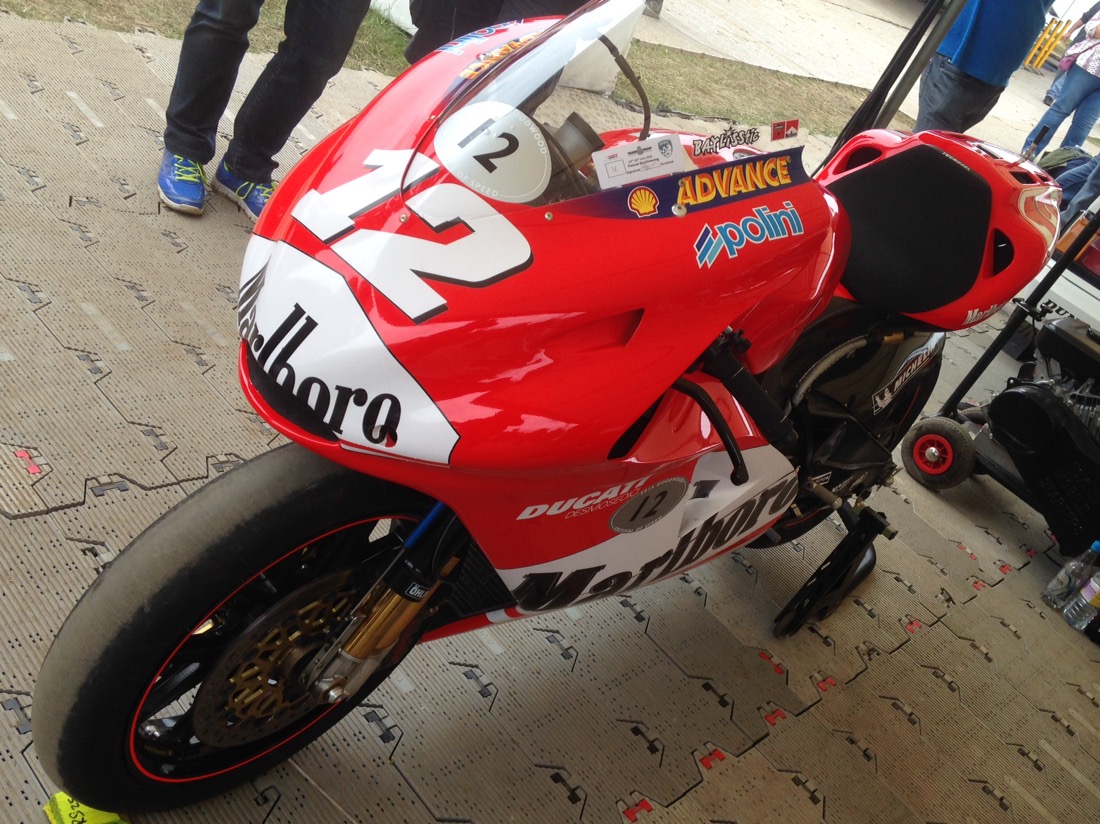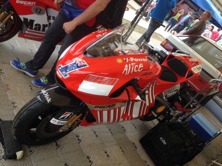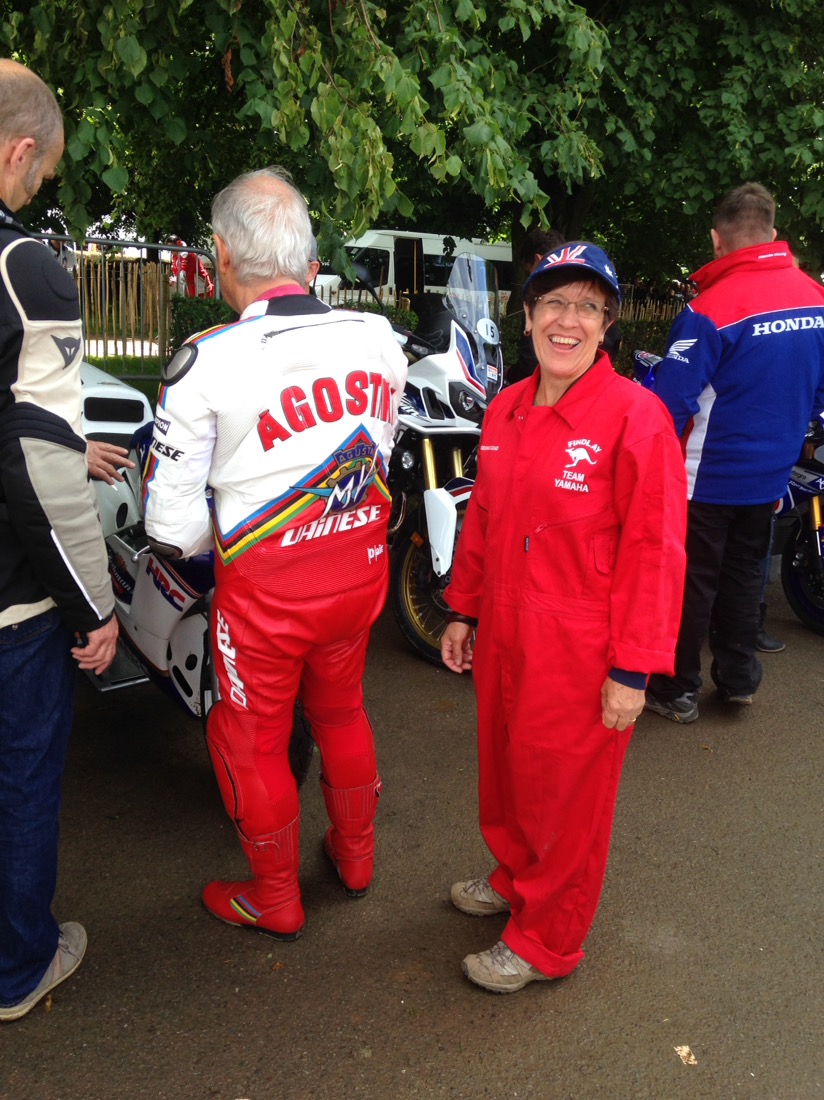 Today is exciting as we were doning the red overalls again as pit crew, and would follow the bikes and F1 cars up the hill to turn the around. Saw these guys in the warm up grid. Aussie Troy Corser and Foggerty.