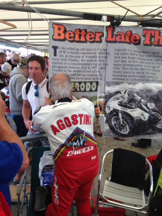 Banners highlighting Jacks exploits, and this fellow wanted to sign one. The one and only Giaccomo Agostini.