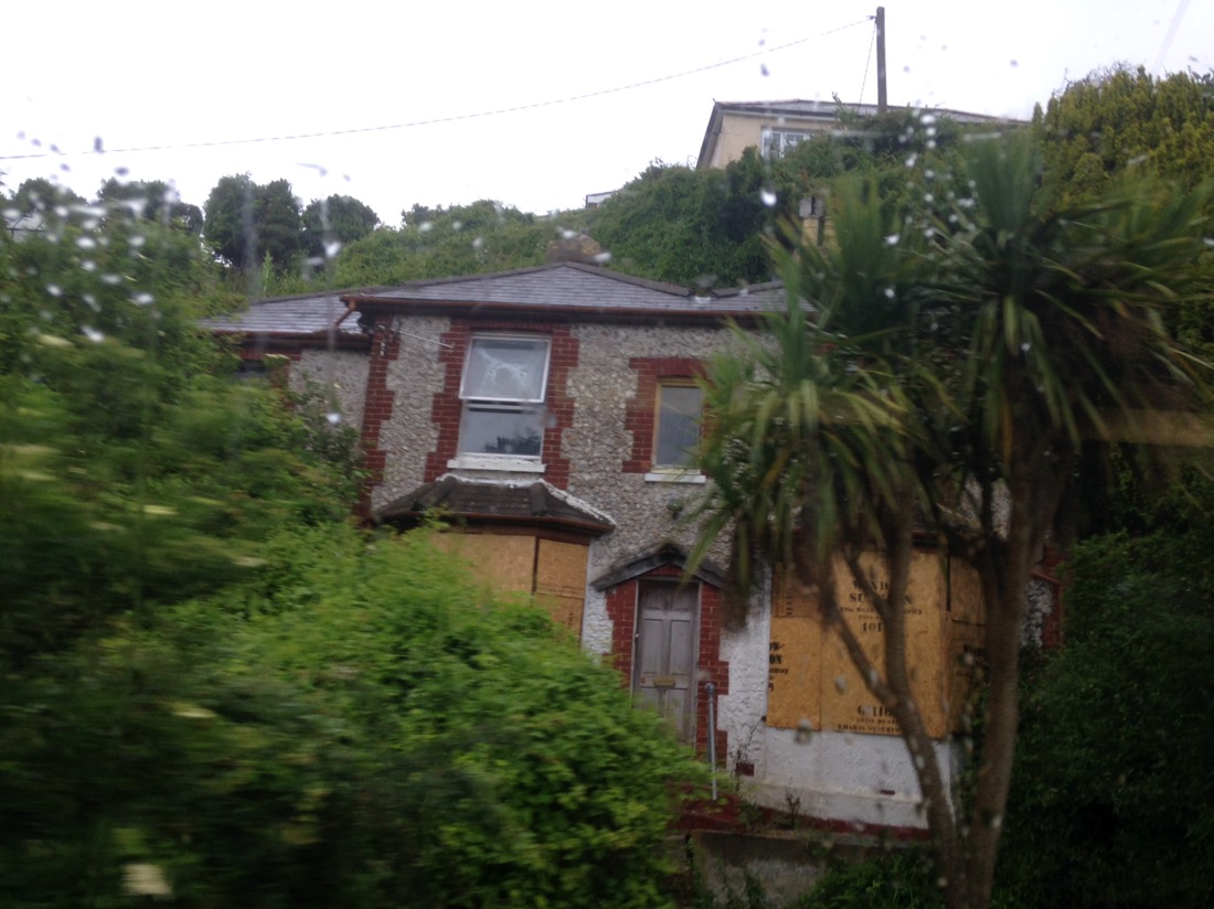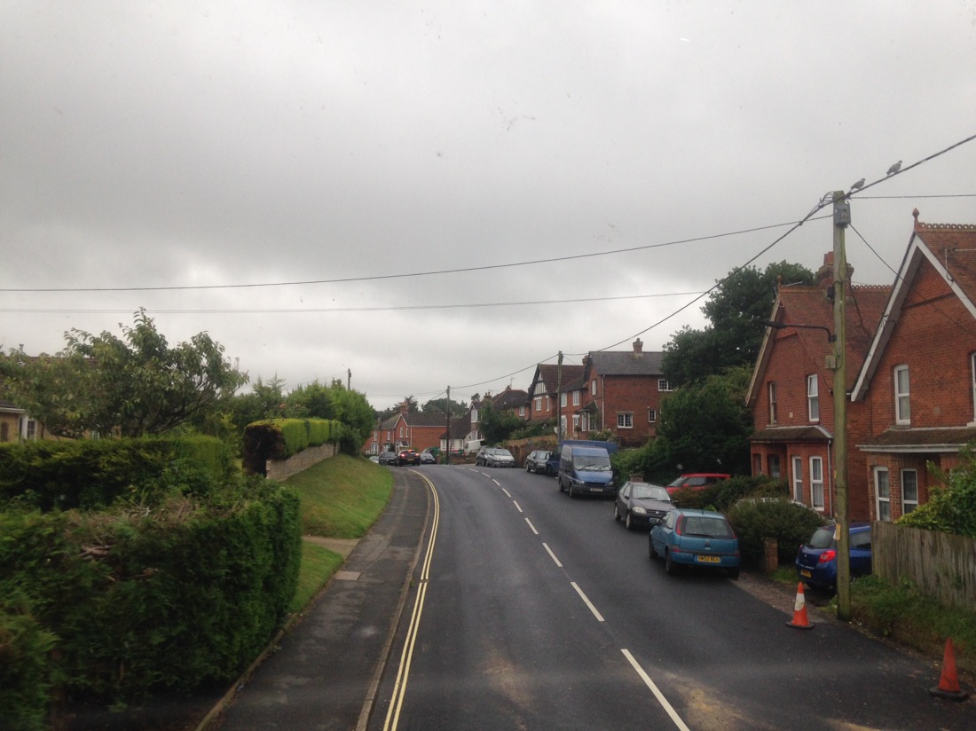 Scenery at speed from the top deck of the bus.