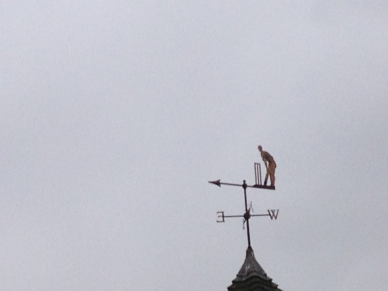 Sir Jack Hobbs as a weather vane on the local cricket pavilion