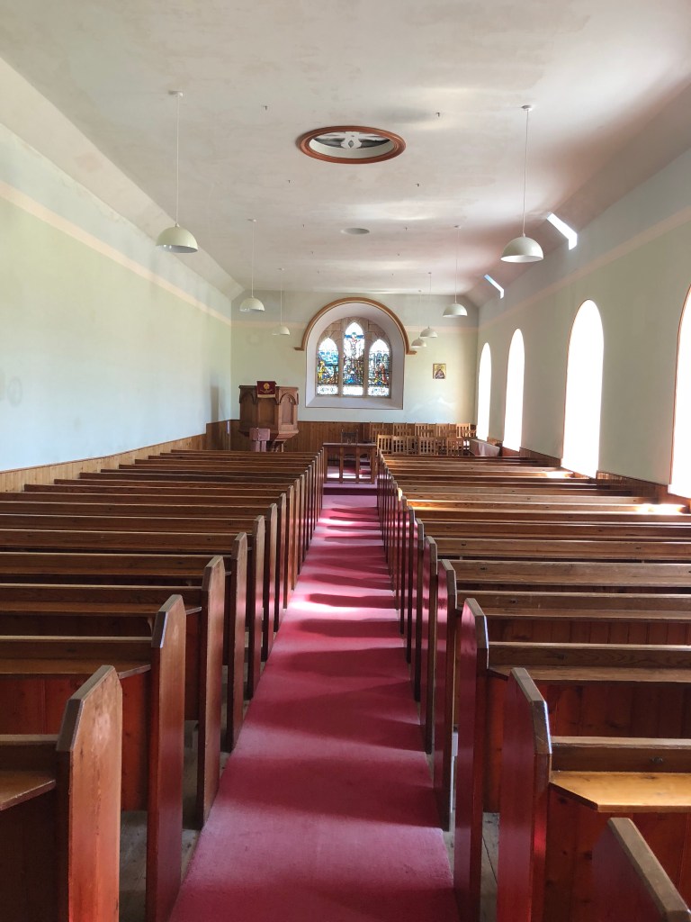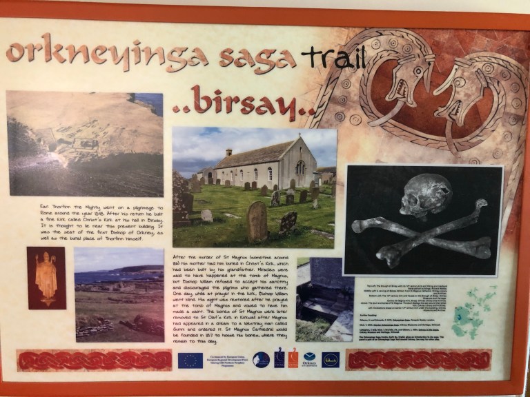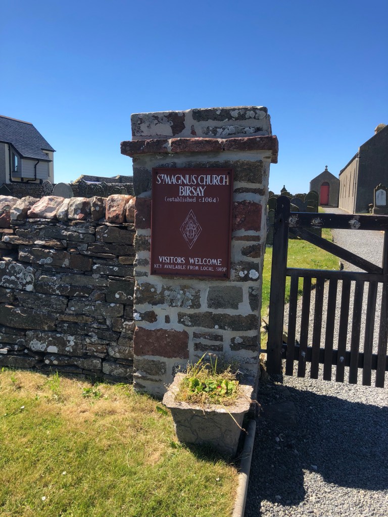 Across to St Magnus Church, built in 1604 and rebuilt in 1664 and 1760, believed to be where St Magnus’s body was taken, after his murder by his cousin Haskins in 1115. His remains were later re-interred in St Magnus Cathedral in Kirkwall.
