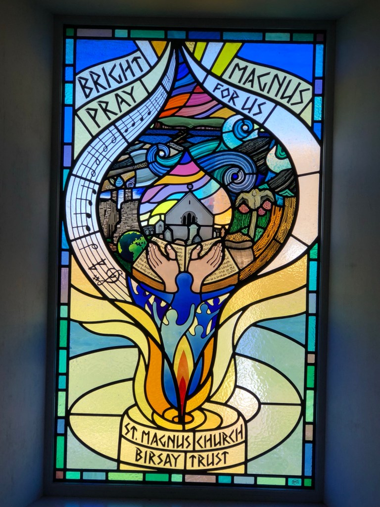 Stained glass window to St Magnus.