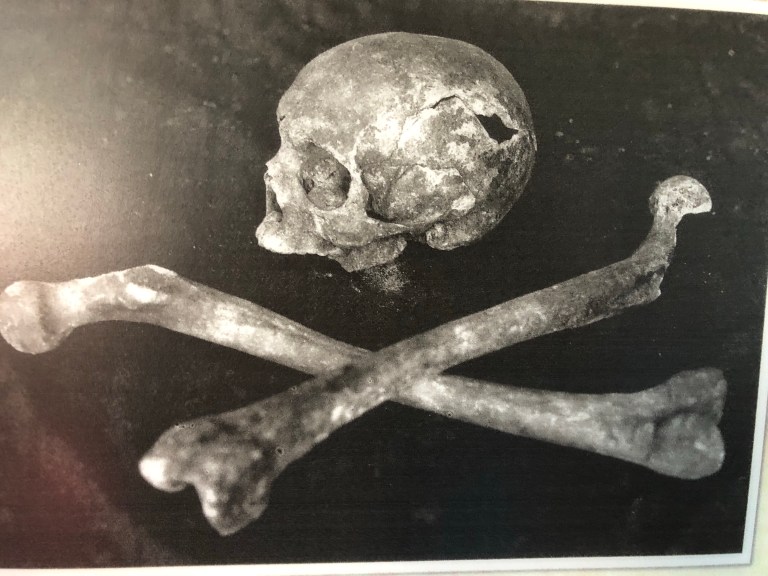 The relics of St Magnus . Note the damage to the skull where the axe hit him.