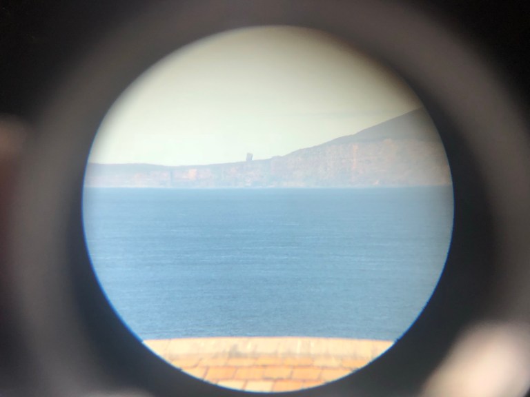 Orkney Islands through the telescope, 9 miles away.