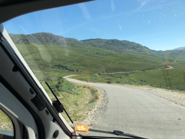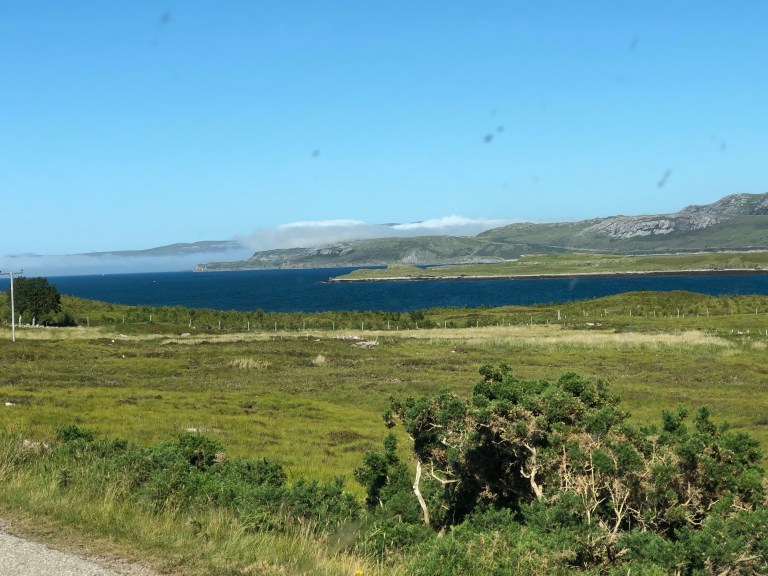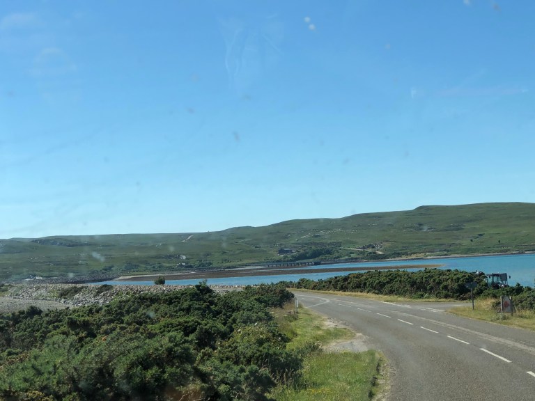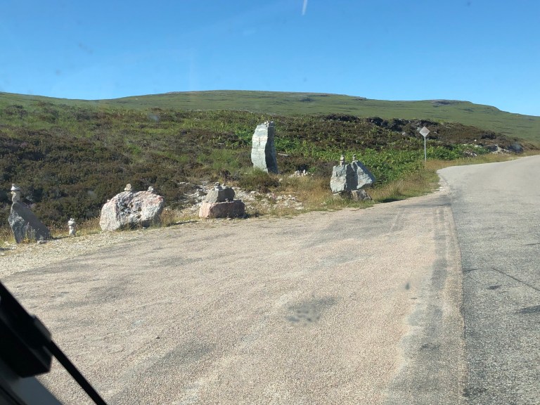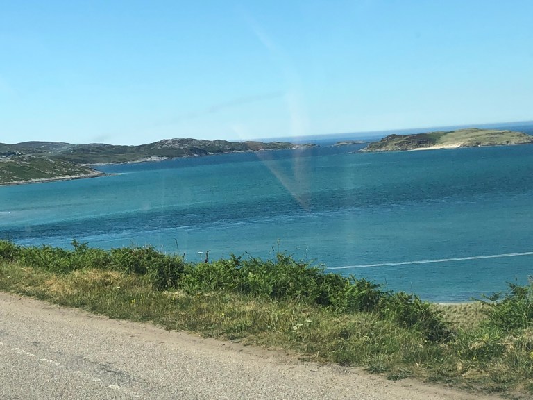 Quick bite and cups and on our way across the top of Scotland, Mey to Durness. It’s only 78 miles, but will take around 3 to 3.5 hours as the road is very winding and only one lane wide with passing bays. Need to add that this is the main road around the top of Scotland.