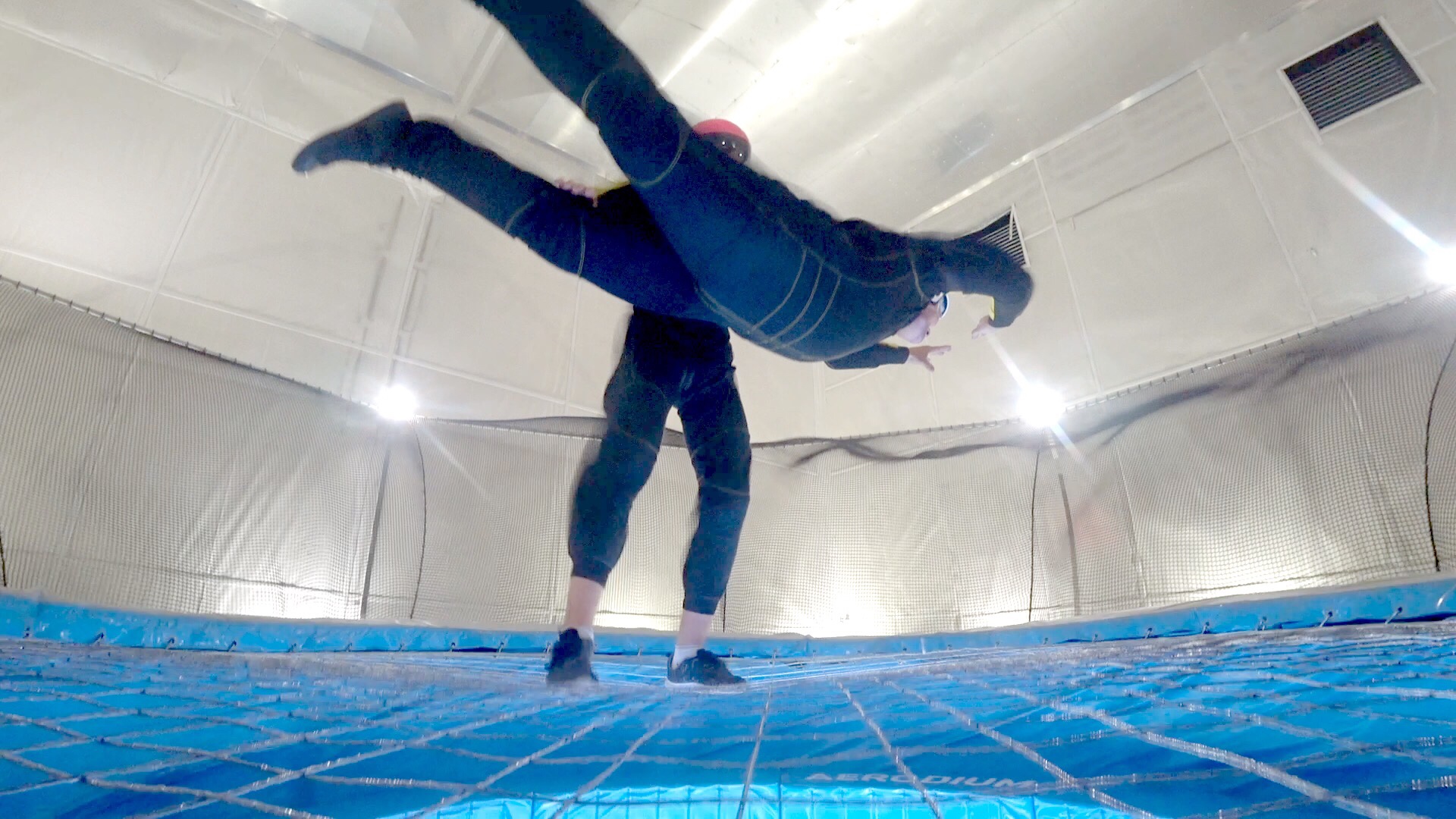Across the road for a new experience. Free falling in a vertical wind tunnel. This was an unbelievable experience. More photos when we receive them.