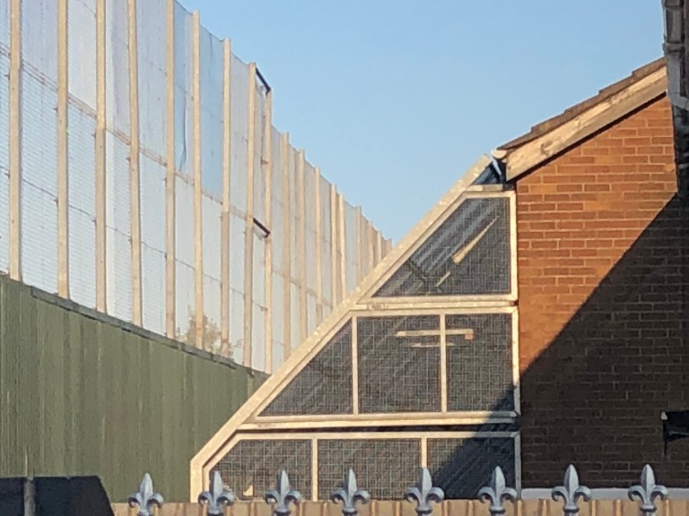 Note the height of the wall, 40 feet, and the secondary defences on the back of the houses. This house is only ten yards from the houses on the other side of the wall. Neither side wants the walls to come down and it is predicted that it will take another two to three generations.