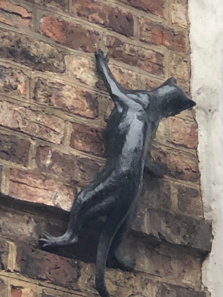Cat climbing the wall.