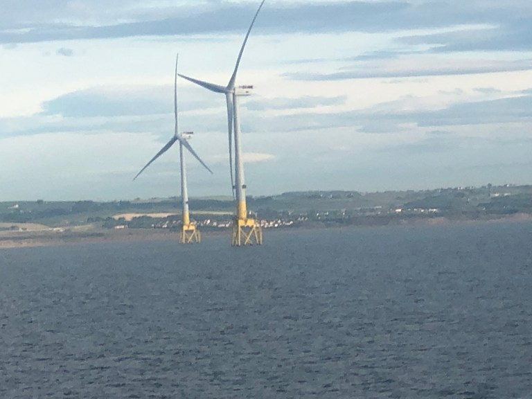 Arrived back in Aberdeen, passing a group of wind generators on the way up the estuary.