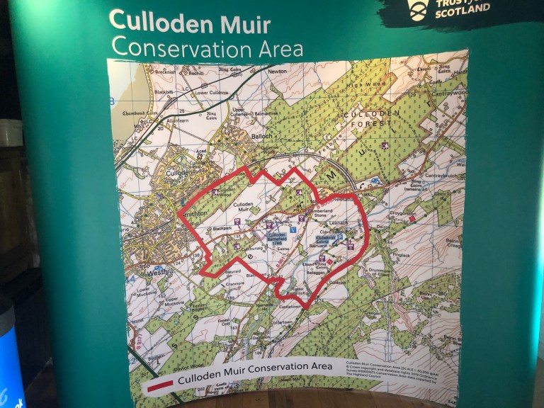 The blue flags indicate where the Jacobites were formed up. About 400 metres apart. The result was a tragic result for the Jacobites. Over 700 lost their lives in a matter of minutes.