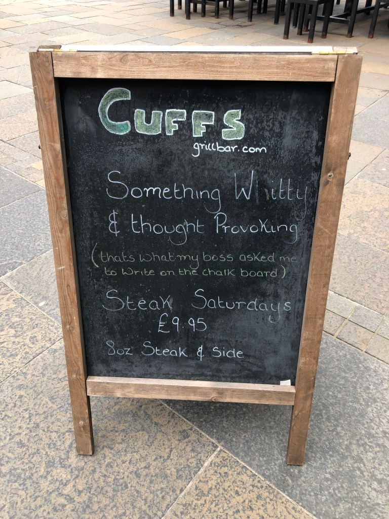This sign was outside the restaurant in the prison. Someone has a sense of humour.
