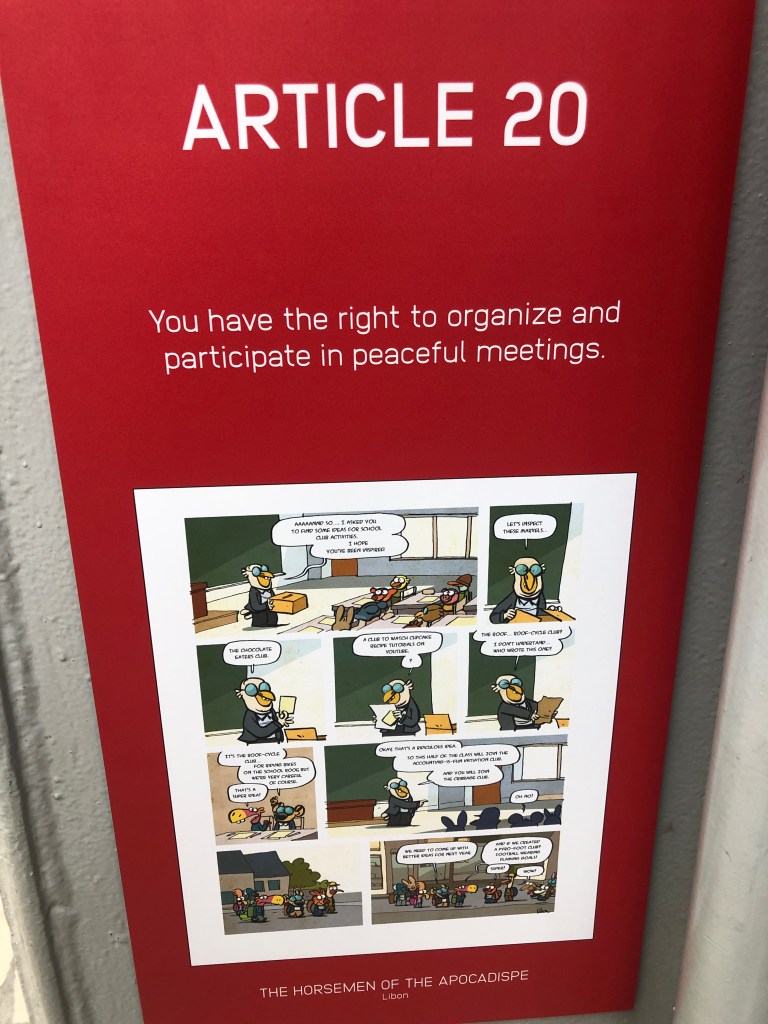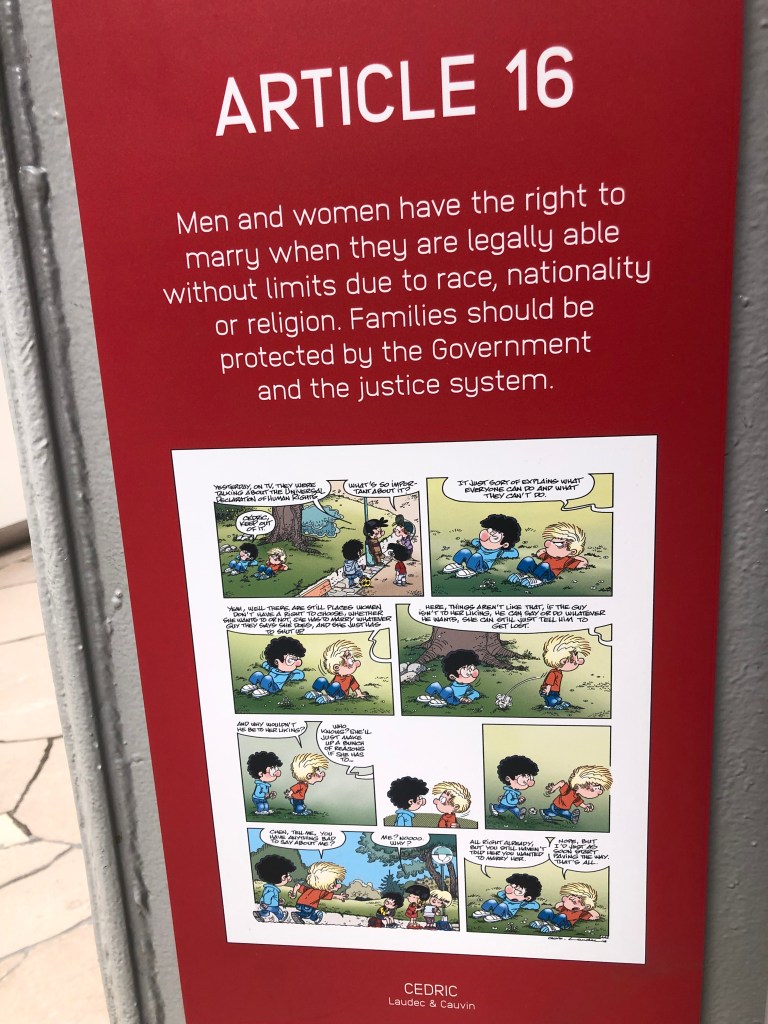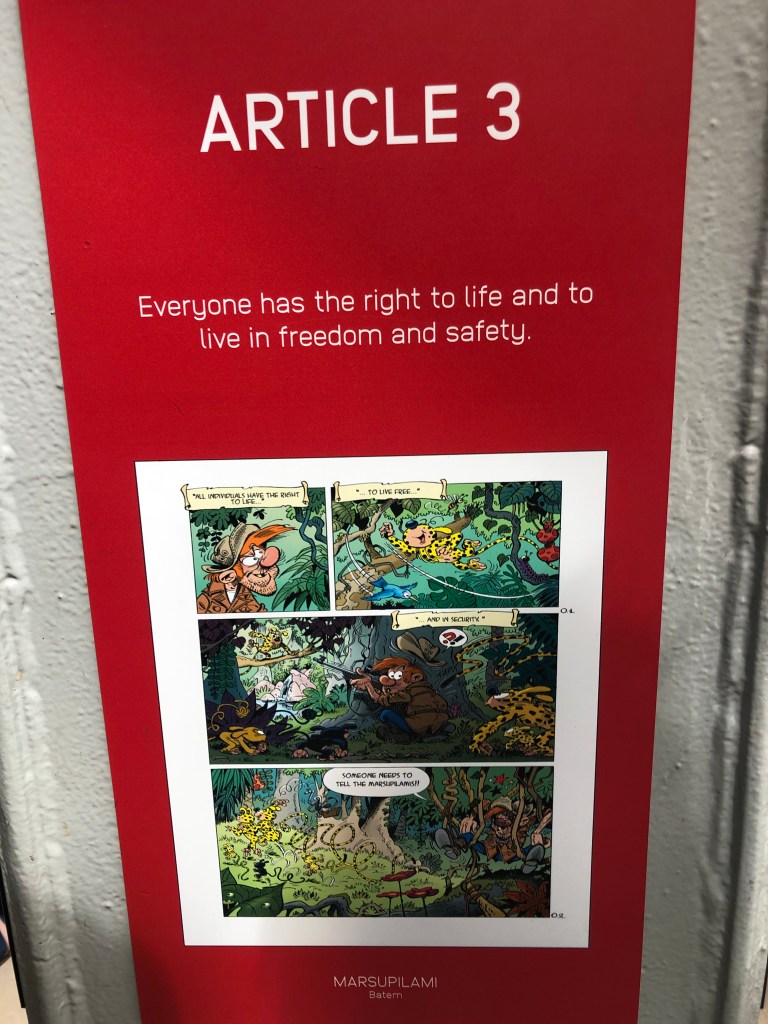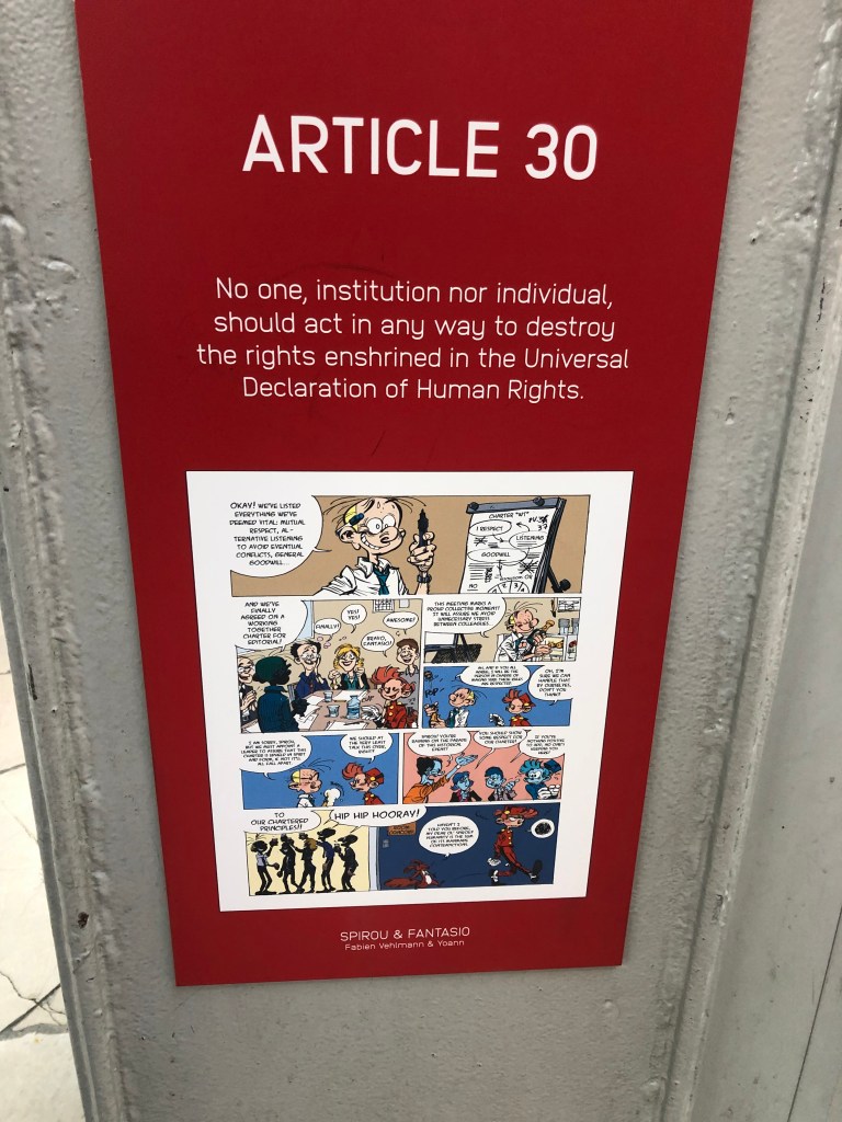 Spirou is Brussels character for the charter/bill of human rights. For those who do not know what the 30 human rights are. Here is a refresher. Read on.