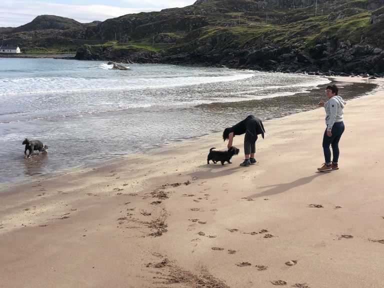 First up this morning, take the dogs for a run on the beach in Clashnessie Bay.