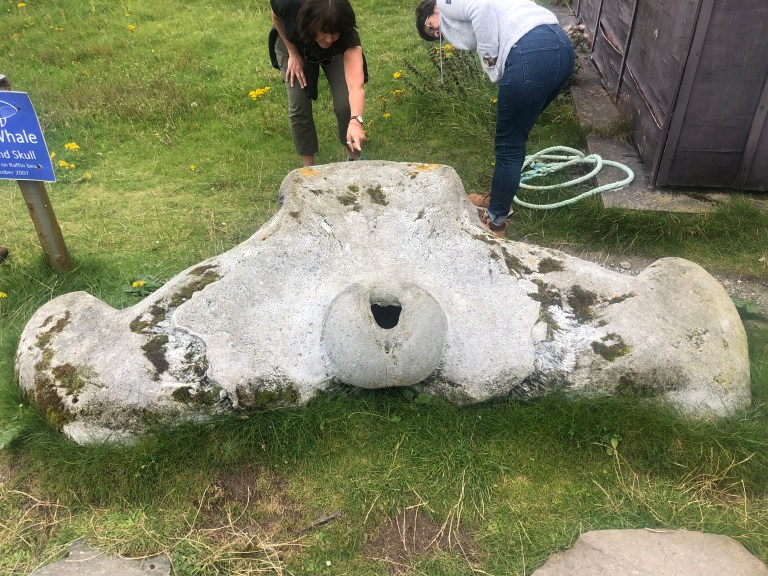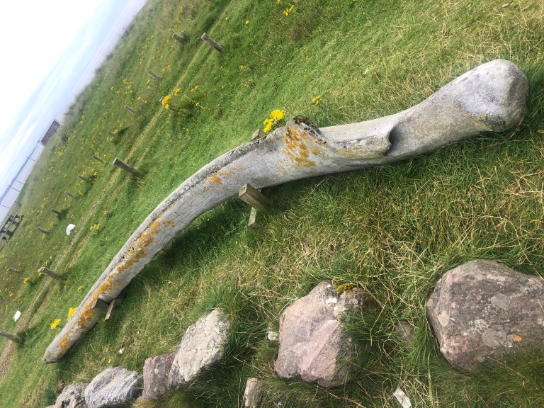 Head bone a jaw bone of a fin whale at Clachtoll.